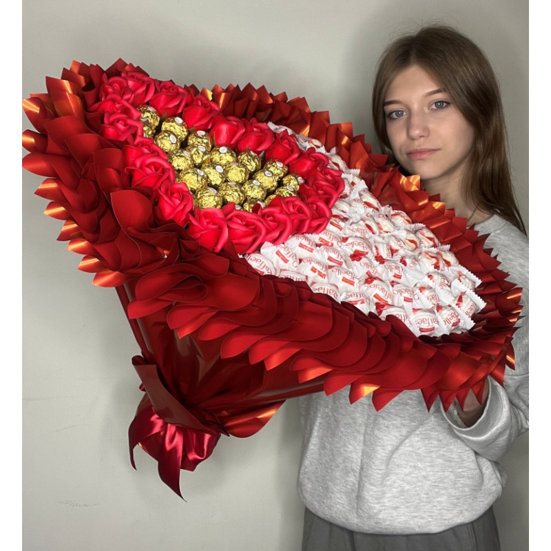 Don't wait! Order this special bouquet with Ferrero Rocher and roses for your loved one today! Give her an unforgettable surprise!